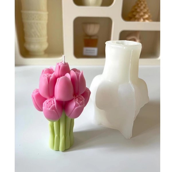 Create elegant and decorative flower candles with this Tulip Bouquet Candle Silicone Mould. The mould features a beautiful bouquet of tulips with fine petal details that produce stunning candles perfect for home décor, gifting, and handmade candle businesses. Made from high-quality flexible silicone, the mould ensures easy demoulding and precise detailing every time.