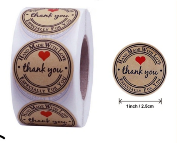 Add a warm and personal touch to your packaging with these Handmade With Love – Thank You Stickers. Designed in a classic round shape with an elegant kraft paper look, these stickers are perfect for sealing packages, decorating gift boxes, and branding handmade products. Made with strong adhesive, they stick securely to paper, cardboard, plastic, glass, and packaging wraps. The 1-inch (2.5 cm) size makes them ideal for candles, soaps, bakery boxes, resin art products, return gifts, and small business packaging. Perfect for handmade sellers, small businesses, gifting, and festive packaging, these stickers enhance presentation and leave a lasting impression on customers.