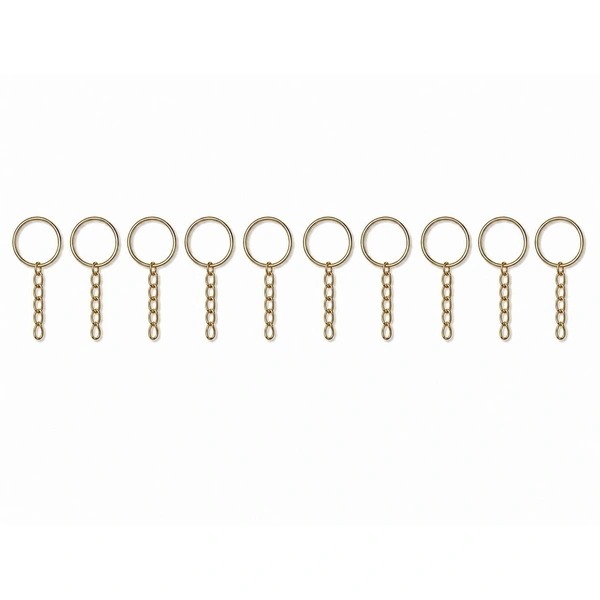 Pack of 10 Premium Keychain Rings with Chain – 2.5 cm Diameter (Gold Finish)