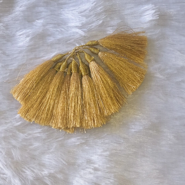 Add a rich and festive touch to your creations with these elegant golden thread tassels. Crafted with silky smooth threads and a beautifully wrapped golden top, these tassels give a luxurious and traditional finish to any project.