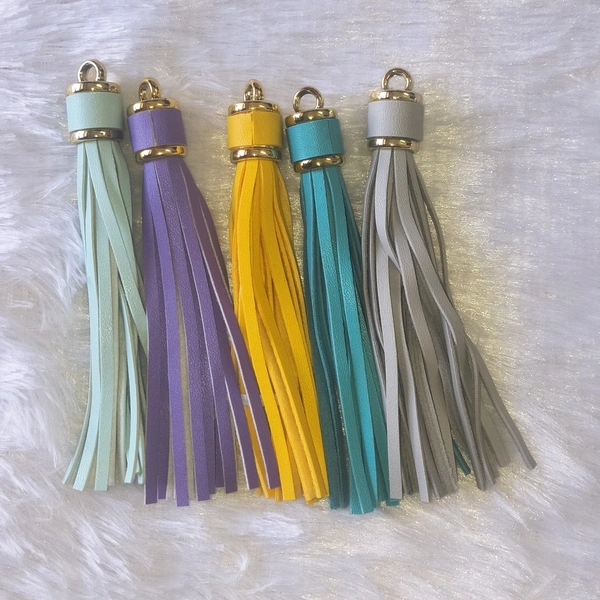 Add a classy and elegant touch to your creations with these premium 4.2-inch tassel charms. Designed with a smooth leather-finish texture and a high-quality gold-toned cap, these tassels give a luxurious and sophisticated look to any project.