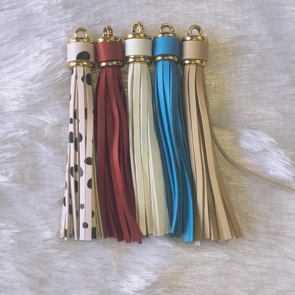 Add a classy and elegant touch to your creations with these premium 4.2-inch tassel charms. Designed with a smooth leather-finish texture and a high-quality gold-toned cap, these tassels give a luxurious and sophisticated look to any project.