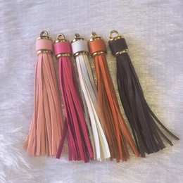 Add a classy and elegant touch to your creations with these premium 4.2-inch tassel charms. Designed with a smooth leather-finish texture and a high-quality gold-toned cap, these tassels give a luxurious and sophisticated look to any project.