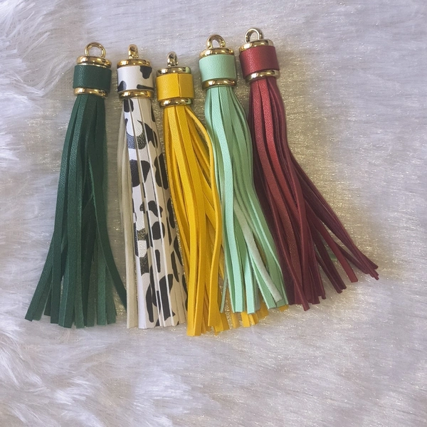 Add a classy and elegant touch to your creations with these premium 4.2-inch tassel charms. Designed with a smooth leather-finish texture and a high-quality gold-toned cap, these tassels give a luxurious and sophisticated look to any project.