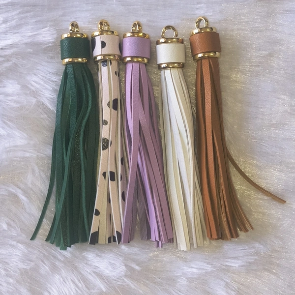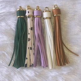 Add a classy and elegant touch to your creations with these premium 4.2-inch tassel charms. Designed with a smooth leather-finish texture and a high-quality gold-toned cap, these tassels give a luxurious and sophisticated look to any project.