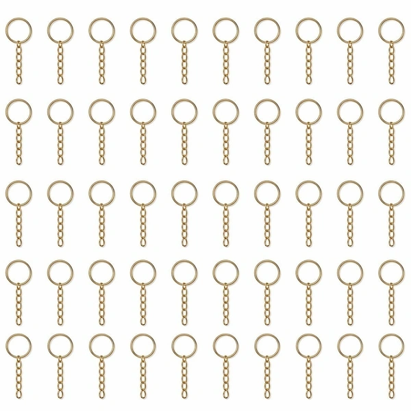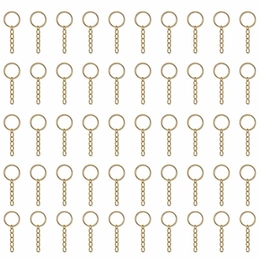 Perfect for bulk crafting and small business needs, this pack of 50 keychain rings comes with attached chains, making it easy to create stylish and durable keychains. With a sleek gold finish, these rings add a premium touch to all your DIY projects.