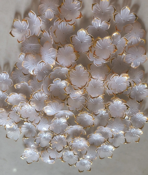 The translucent pearl white tone diffuses light beautifully inside epoxy resin, while the fine gold outlining enhances each petal, creating a subtle yet luxurious shimmer. Lightweight and finely detailed, these beads embed smoothly without overpowering your design—ideal for elegant, minimal, and premium resin pieces.