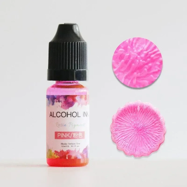 Add soft and vibrant color to your resin creations with this Pink Alcohol Ink, specially designed for resin art projects. This highly pigmented ink blends smoothly with epoxy resin to create beautiful color effects, artistic patterns, and unique designs.