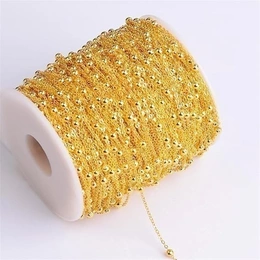 Add a touch of elegance and sophistication to your creations with this beautiful gold beaded chain. Designed with evenly spaced metallic beads on a delicate chain, it offers a perfect balance of minimalism and luxury for all your DIY and jewelry projects.