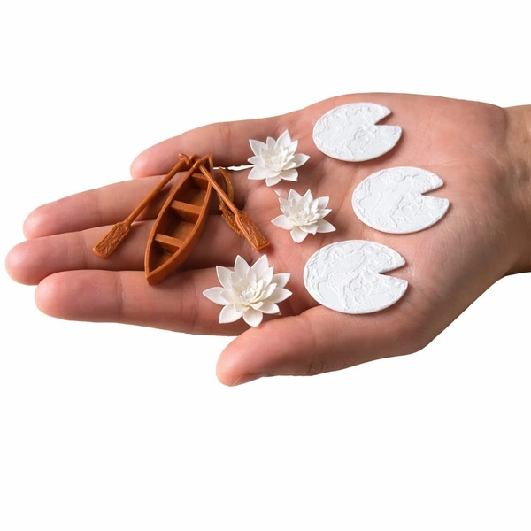 • Includes: Lotus flowers, lily pads, and miniature boat