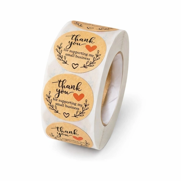 Show your appreciation to customers with these beautifully designed “Thank You for Supporting My Small Business” round stickers. Featuring a warm kraft-style background with elegant black lettering, delicate leaf accents, and a small heart detail, these stickers add a thoughtful and professional finishing touch to your packaging.