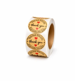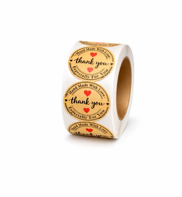 Add a warm, handcrafted touch to your packaging with our “Thank You – Handmade With Love” Round Sticker Roll (500 Stickers). Designed in a classic kraft-style look with elegant typography and heart detailing, these stickers instantly elevate your product presentation and leave a lasting impression on your customers.