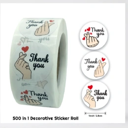 Each roll comes with 500 round stickers, featuring an elegant finger-heart thank you design that suits all types of handmade products — from candles and resin art to jewellery, gifts, and craft supplies.