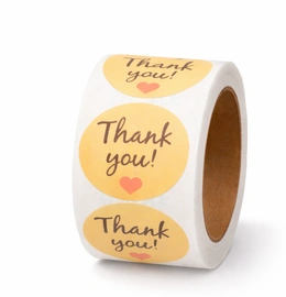 Add a warm and professional touch to your packaging with these yellow “Thank You” round stickers. Featuring a simple handwritten-style “Thank You!” text with a small heart, these stickers are perfect for expressing appreciation to your customers in a neat and elegant way.